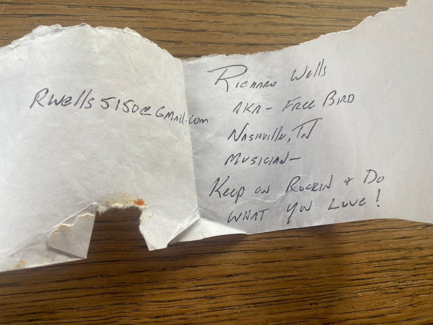 The next major stop was Tallahasee. The cow couple switched routes toward Georgia, and I walked around looking for any sign of food. There was nothing. Walking back to the bus a tall, middle-aged man approached me and said, I’m sorry but you look like somebody from the band Queen, I just notice that type of thing because I’m a musician. I didn’t have to say much for him to continue and tell me he was heading to Nashville, where he was going to connect with some other musicians. He realised I was Australian and told me about a time he did a catering job for Nicole Kidman and Keith Urban, and how Nicole had posted them a 50 dollar tip in the mail and called to thank them for their service. He also mentioned he’d been in a cult for 15 years, and that he had a bit of a penchant for substances. We had a bit of a back and forth about music, and he asked about my stuff. Later he handed me a note with his contact and a message to Keep On Rockin and Do What You Love. He pointed out his email address contained 5150 as a reference to the police code for a mentally disturbed person. We got back on the bus and I didn’t see him again. The rest of the journey was smooth, driving overnight the bus was quiet and the road rocked me to sleep. We finally stopped at a gas station which had hot food. I burnt my mouth on a bean and cheese taco and scoffed a couple of cliff bars.